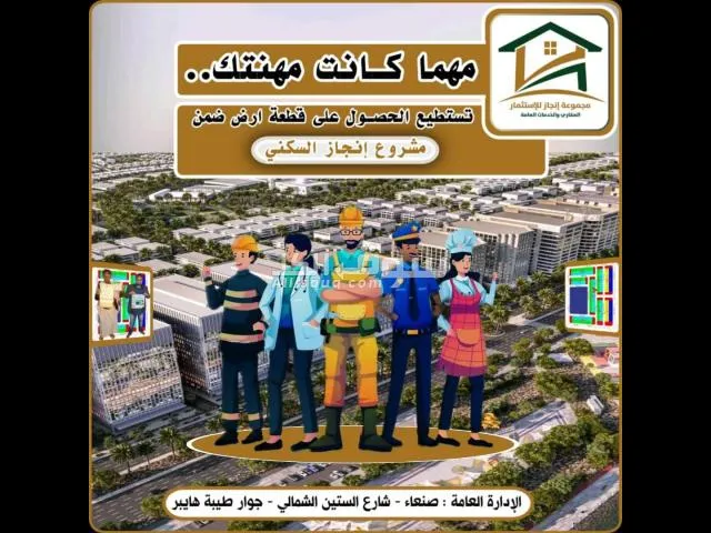 📢 فرصة العمر لشراء أرض في محافظة صنعاء! 📢 إذا كنت تحلم بامتلاك أرض، فهذه هي الفرصة التي لا تتكرر! 🌟 _الأسعار الآن في أدنى مستوياتها_ بسبب ركود السوق واحتياج الناس، والفرص لا تدوم! ⏰ ✅ أراضي حرّة، موثّقة، ومضمونة 100٪ ✅ استلم الأرض واعمر وابنِ. ✅ خدمات متوفرة. من اسواق مدارس ...– وموقع مميز. ✅ التقسيم حسب طلب الزبون لبنتين فاكثر _💰 الأسعار تبدأ من 150 ألف إلى...